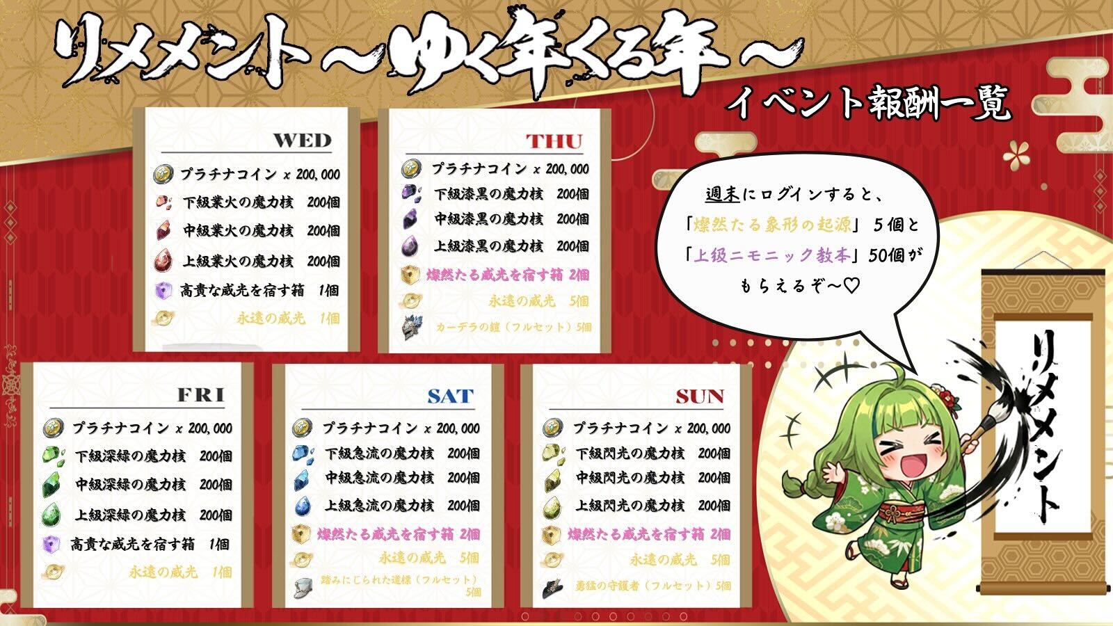 ②ログイン報酬は、すべてのウォーデンの皆さんが対象です。年末年始にもぜひ『リメメント』へアクセスしてください。