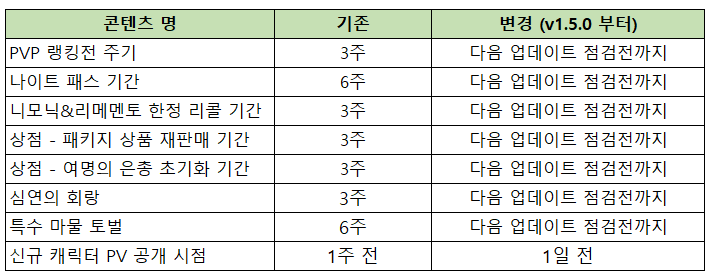 서비스 안정화를 위한 7~9월 업데이트 일정을 기존 3주, 6주 2회 업데이트에서 매월 첫째주 수요일 1회 업데이트로 변경